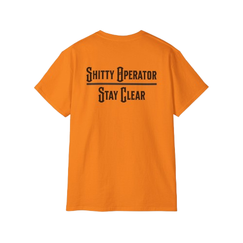The Shitty Operator – Stay Clear shirt is for those who own their chaos and don’t fake perfection. With its loud orange tone and unapologetic back print, this shirt makes sure everyone knows where you stand — and where they shouldn't.