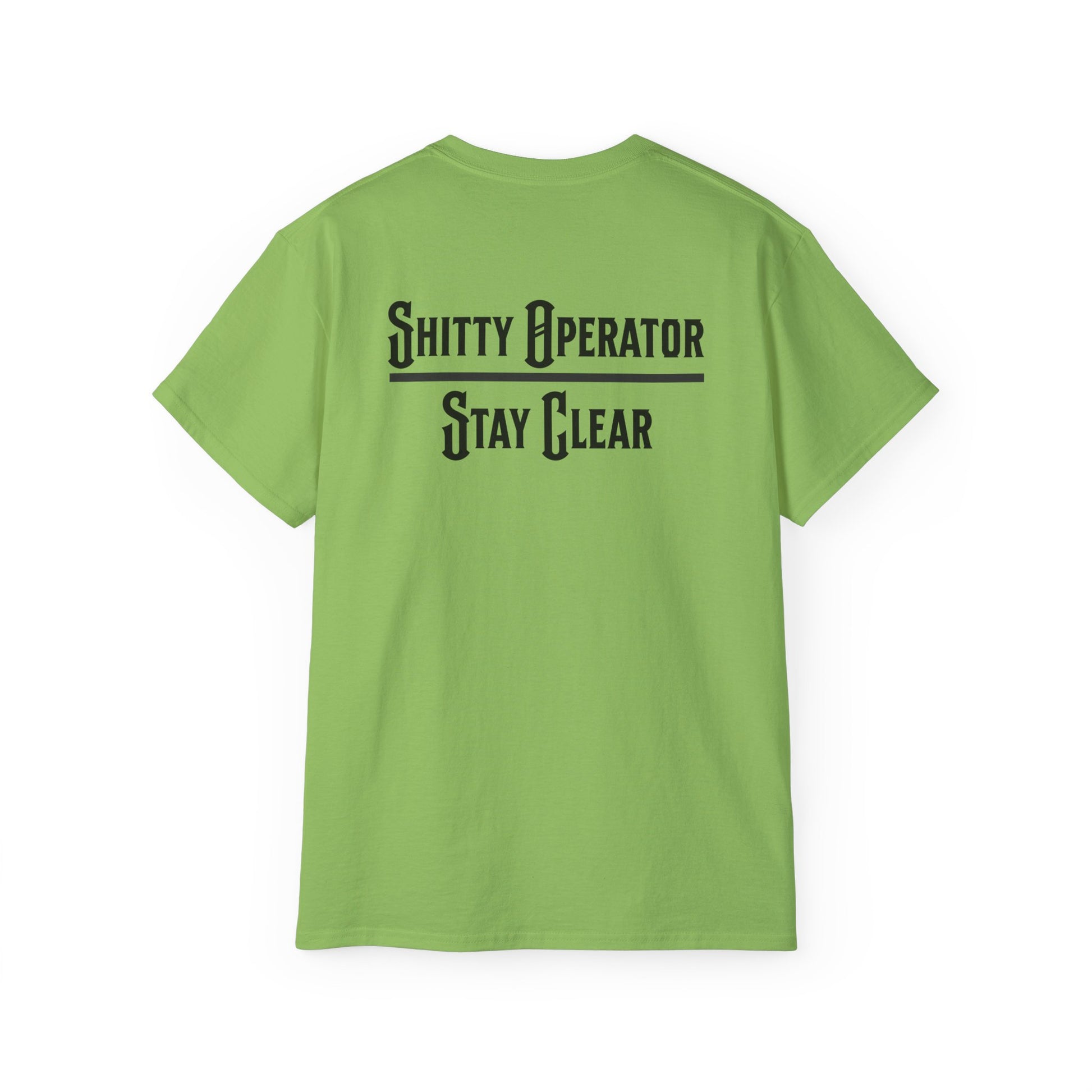 Modeled after the classic job-site warning signs, the “Shitty Operator Stay Clear” tee is a tongue-in-cheek nod to every crew’s favorite inside joke. Bright, bold lettering gives it that safety-sign look while delivering a punchline every operator and laborer can appreciate. Whether you’re in the cab, on the ground, or just grabbing a beer after work, this shirt lets everyone know to keep their distance. Comfortable, durable cotton makes it perfect for long days and longer laughs.